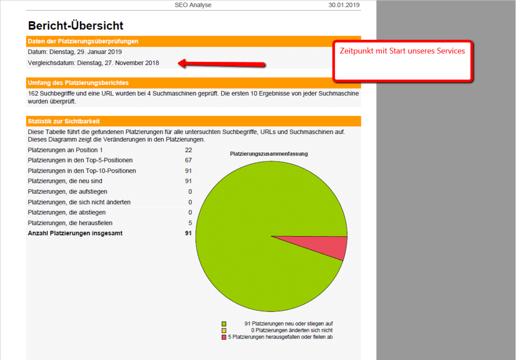 - der Platzierungsbericht Ihrer Homepage in Suchmaschinen 9 * pro Jahr